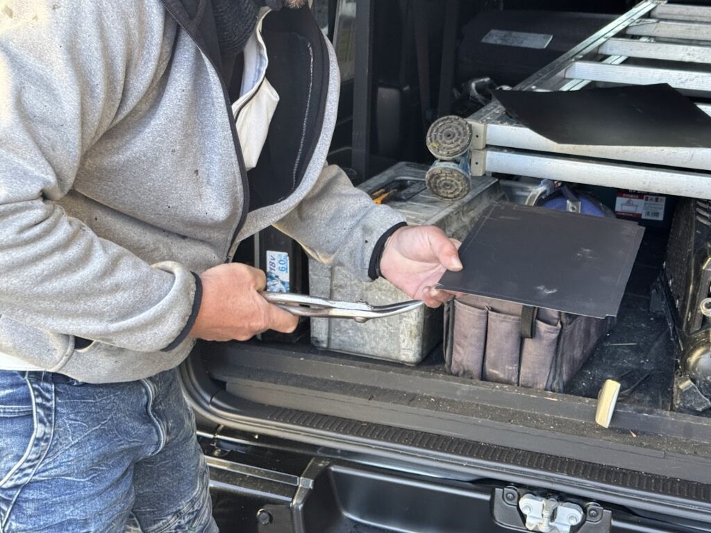 そして板金を固定し、外壁となじむように仕上げていきます。