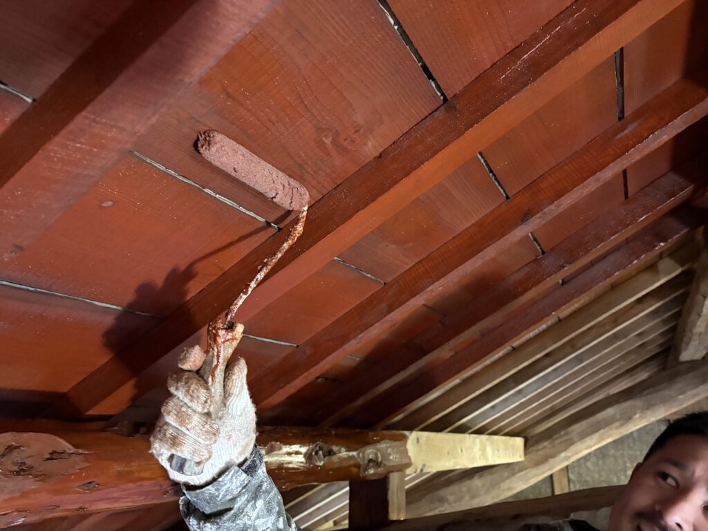 ハケとローラーを使い分けて塗っていきます。
