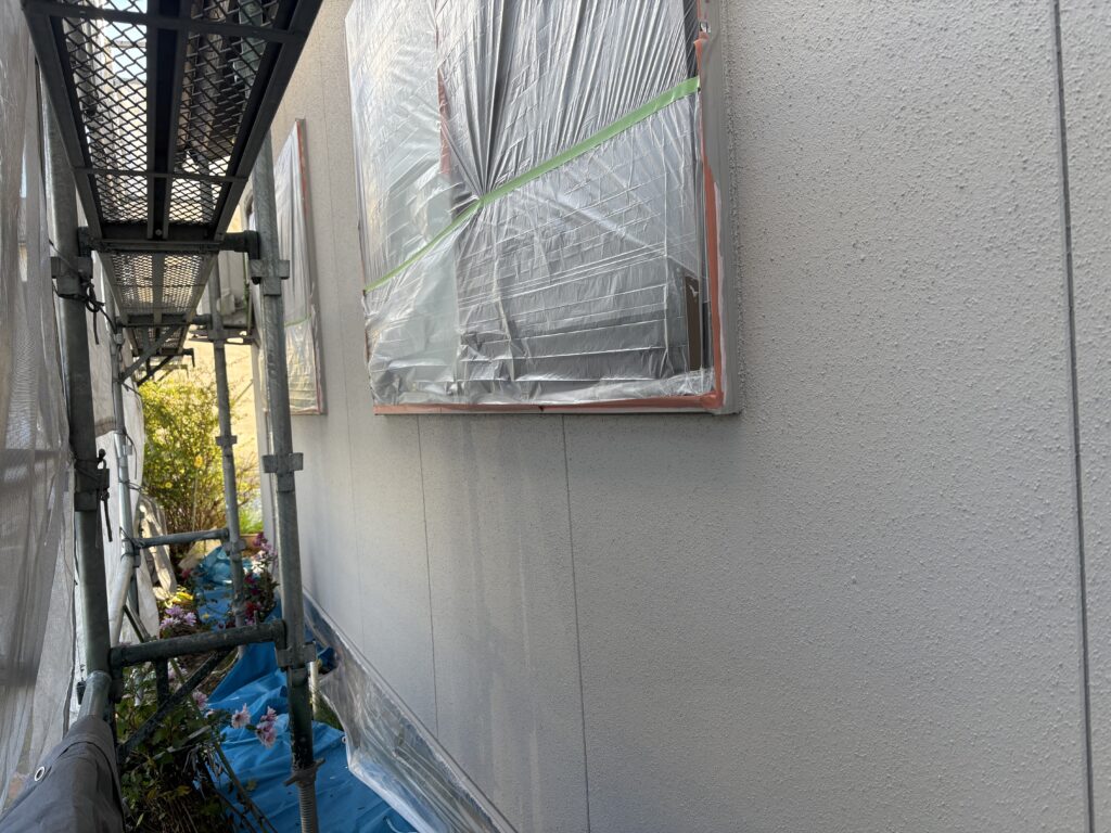 今日はO様邸の外壁上塗りを行いました。