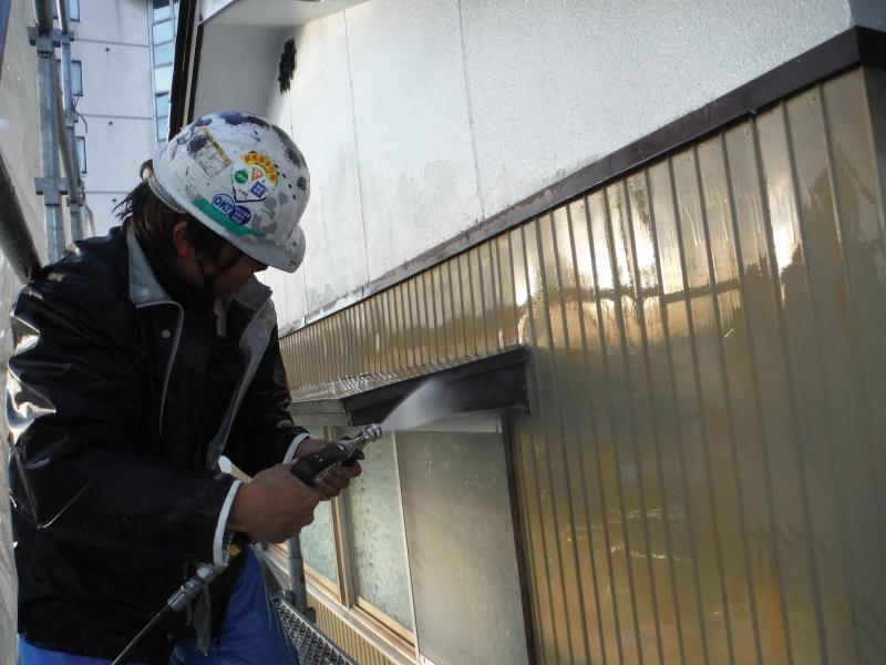 その後、高圧洗浄機を使って、