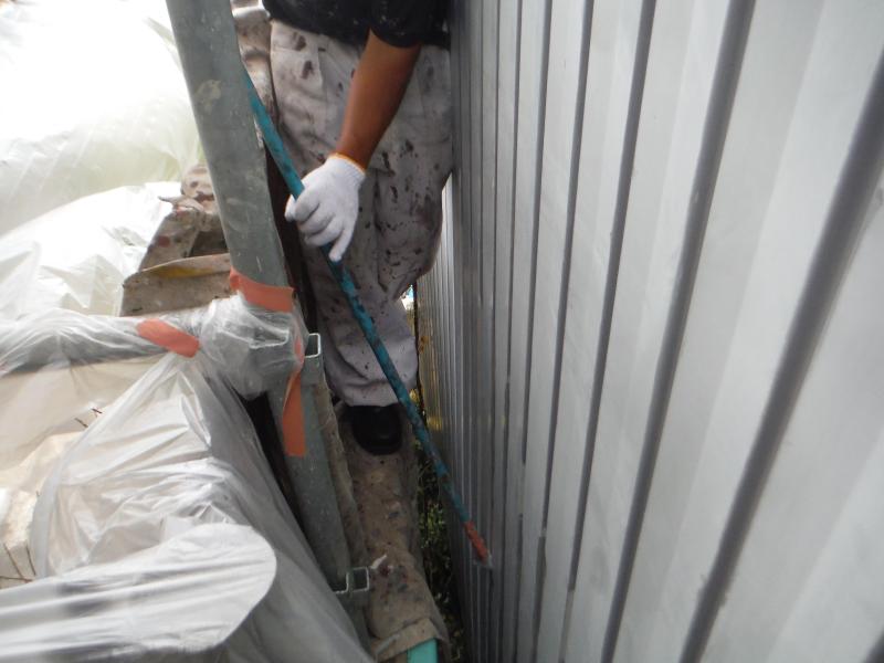 7日目は、外壁の下塗り(さび止め)を行います。