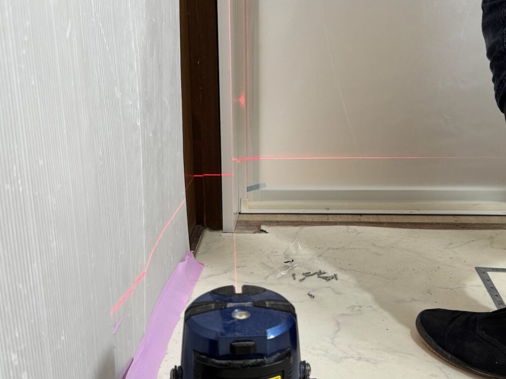レーザーを当てて何度も確認しながら作業を進めます。