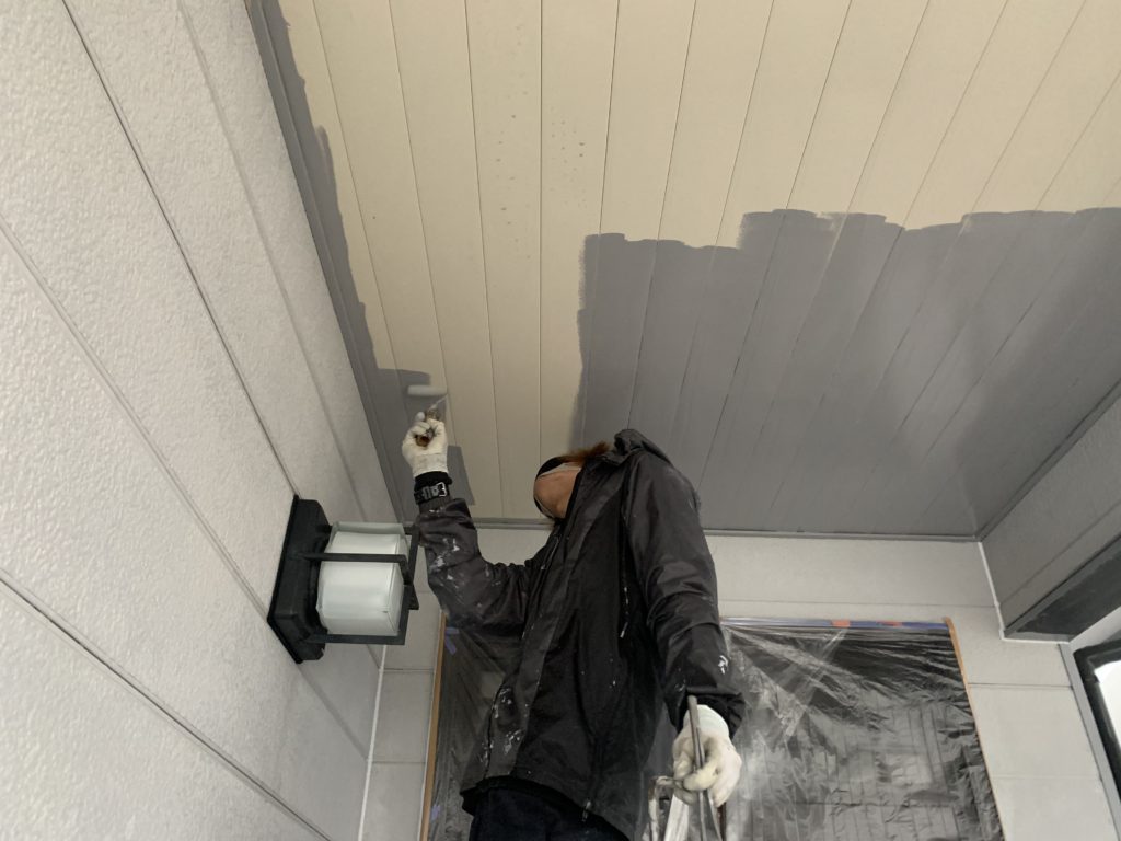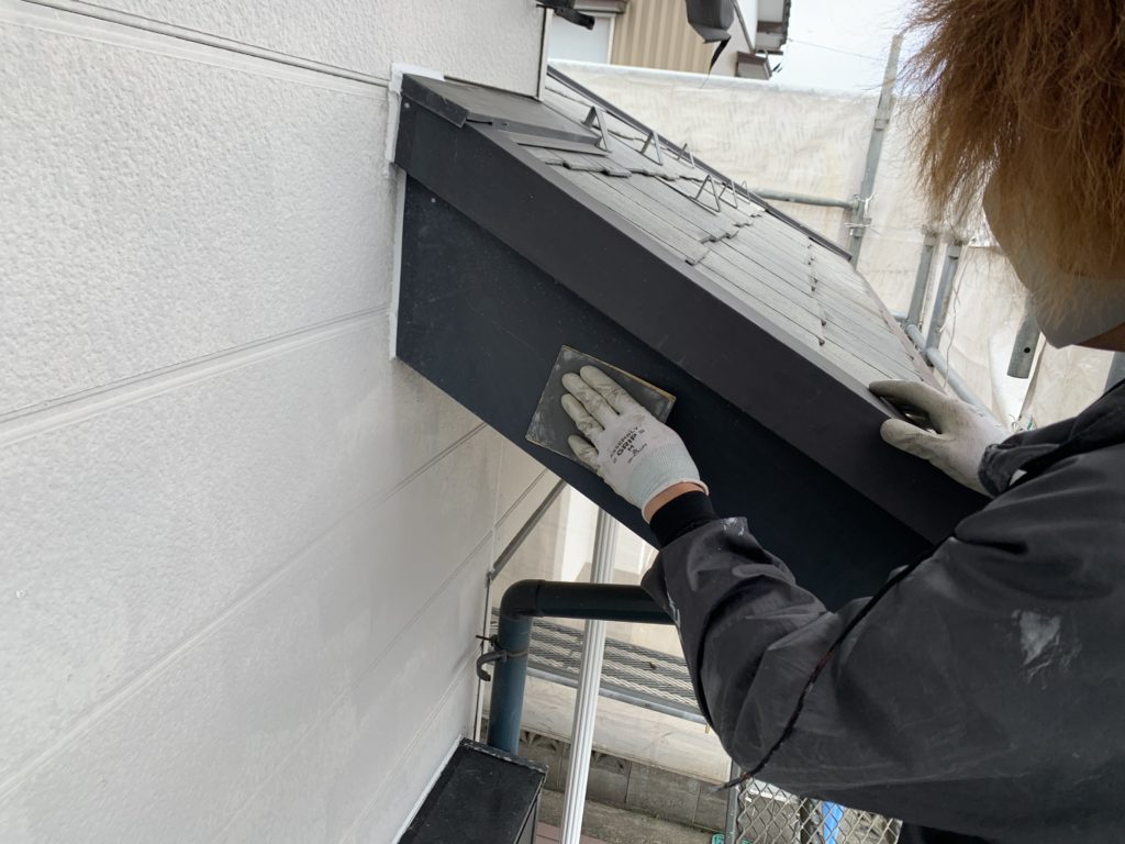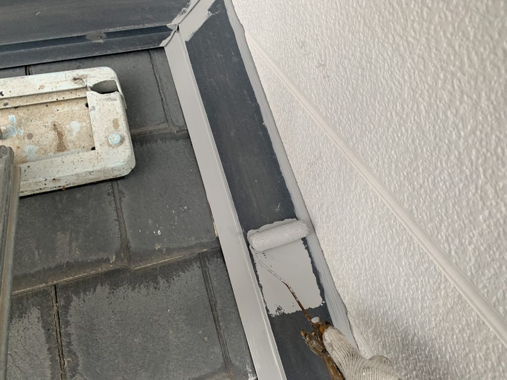 ローラーが入らない細かい箇所はハケを使って丁寧に塗っていきます