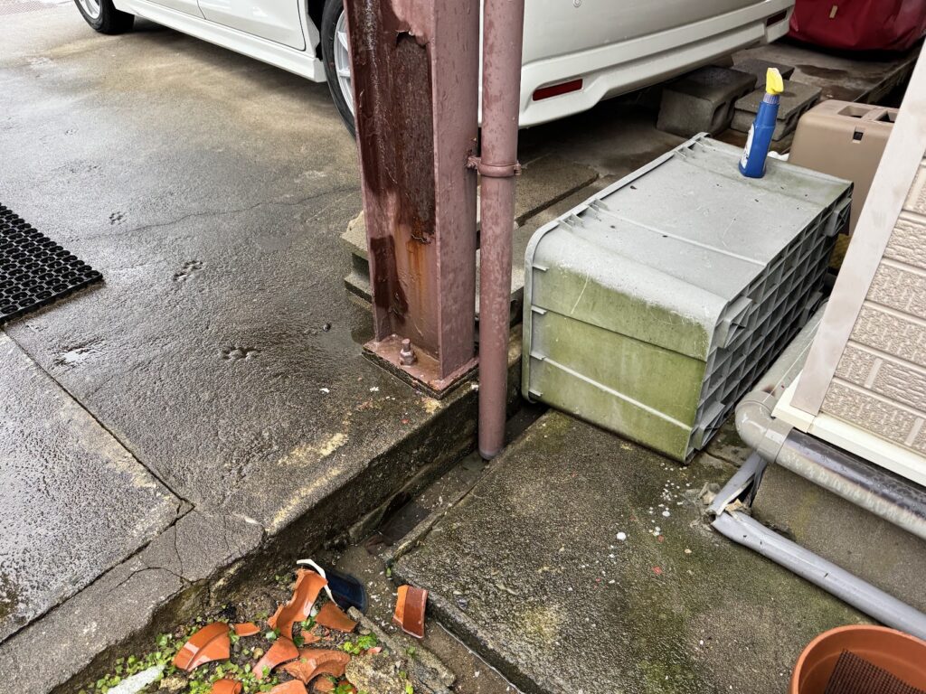 雨の日に気づく小さな不具合。車庫の雨樋も直せます。
