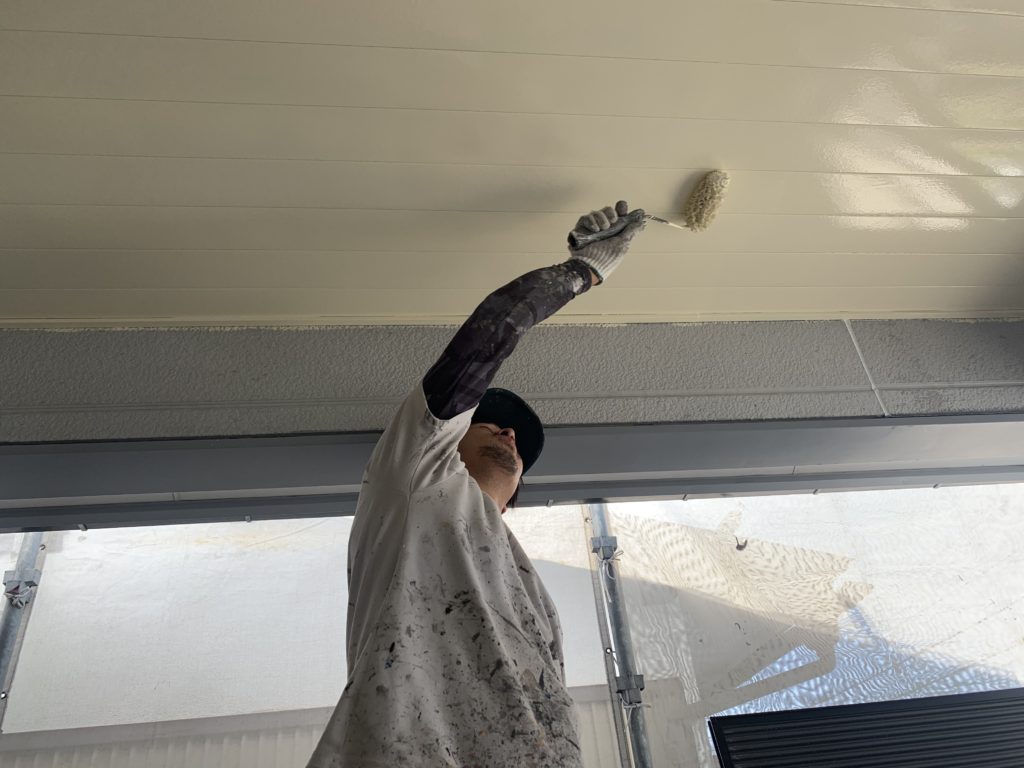 最後に玄関前の天井の中塗り、上塗りを行いました。