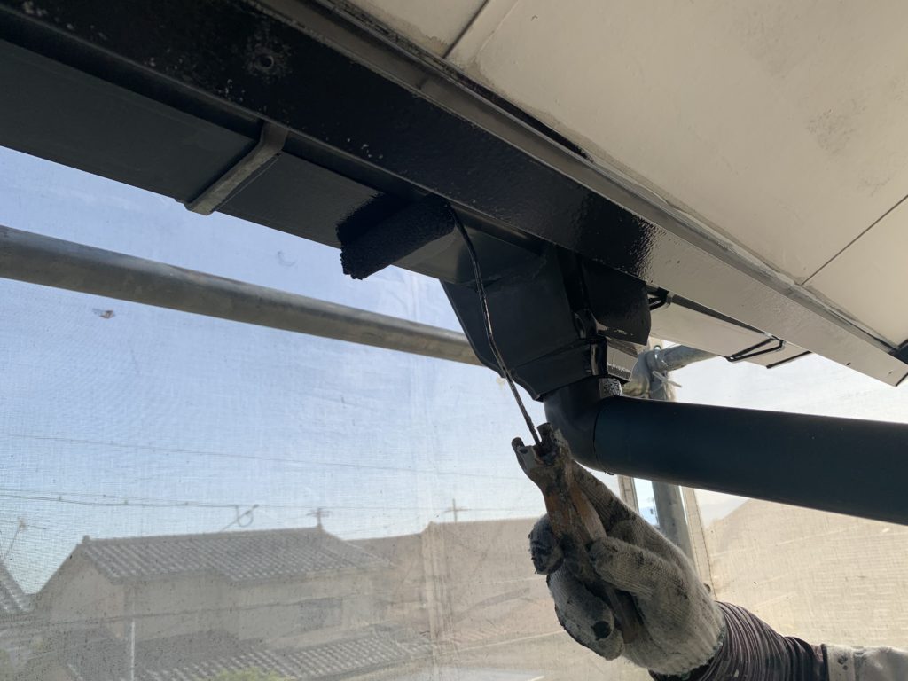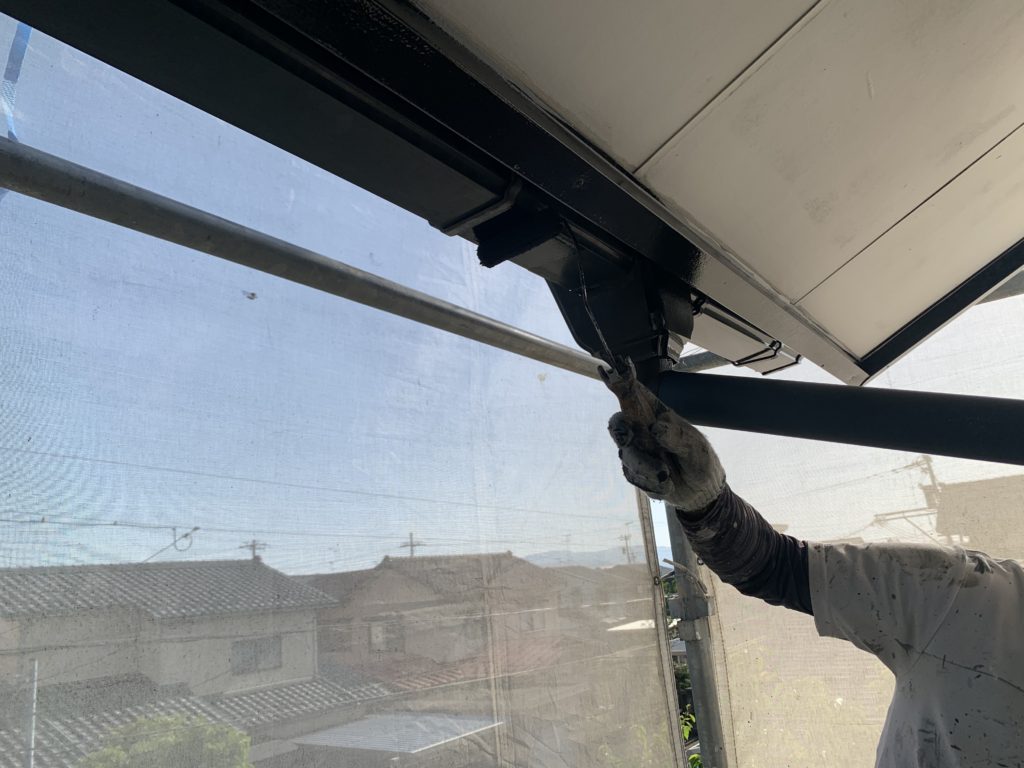 横樋の塗装、破風の中塗りを行いました。