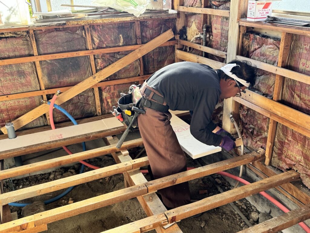 そして補強が終わった箇所からは、断熱材をすき間なく敷き詰めていきます。