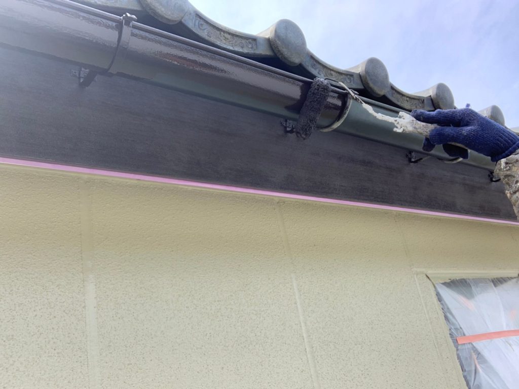 その後、雨樋の中塗りを行います。