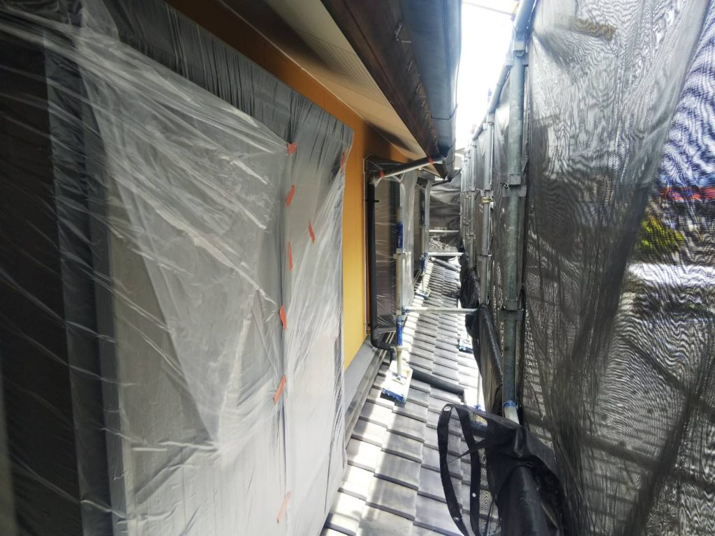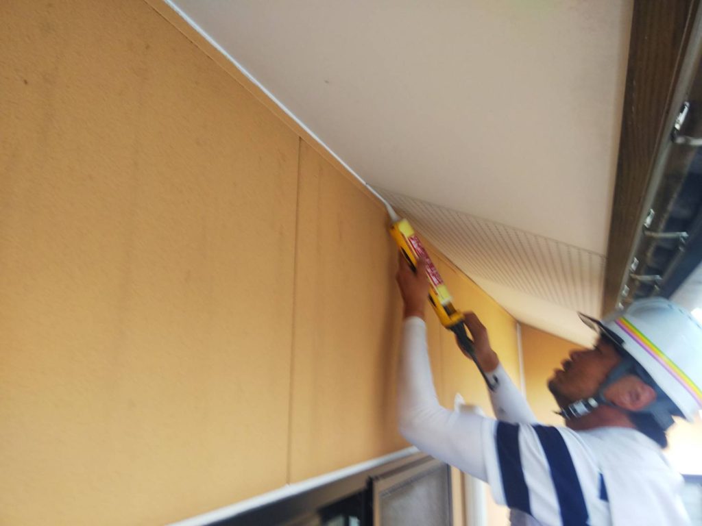 塗装親方・三上浩平ブログ天井際のコーキング天井際のコーキングから行いました。ここを行っておくと綺麗に収まるのでしっかり行います。終わり次第養生と車庫側錆止めを行いました。養生はまだ塗装しませんで一階正面は養生を残してあります。