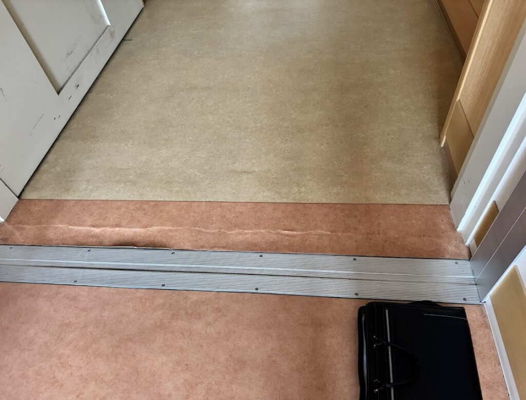 シートが捲れている状態は利用者の方が足を引っ掛けて転倒してしまう可能性があります。