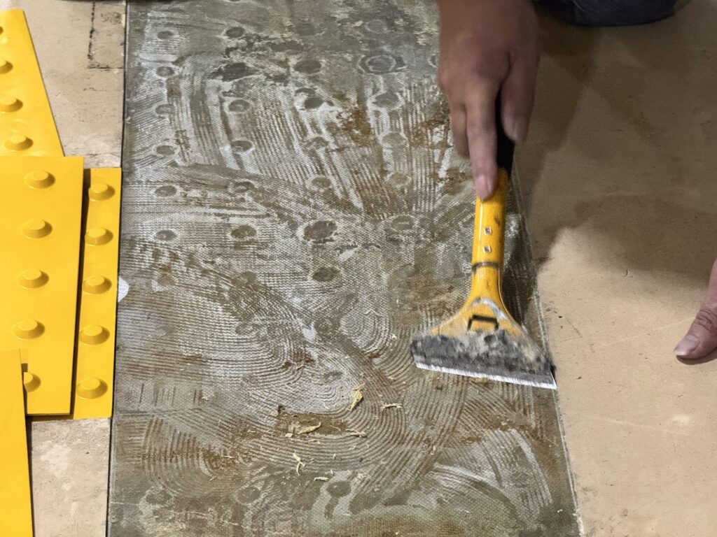 まずは古いシートと点字ブロックを丁寧に撤去し