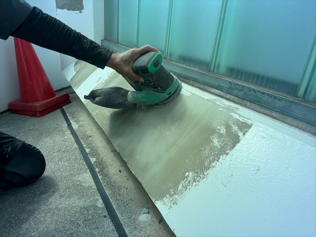 サンダーを使用し平滑にしていきます。