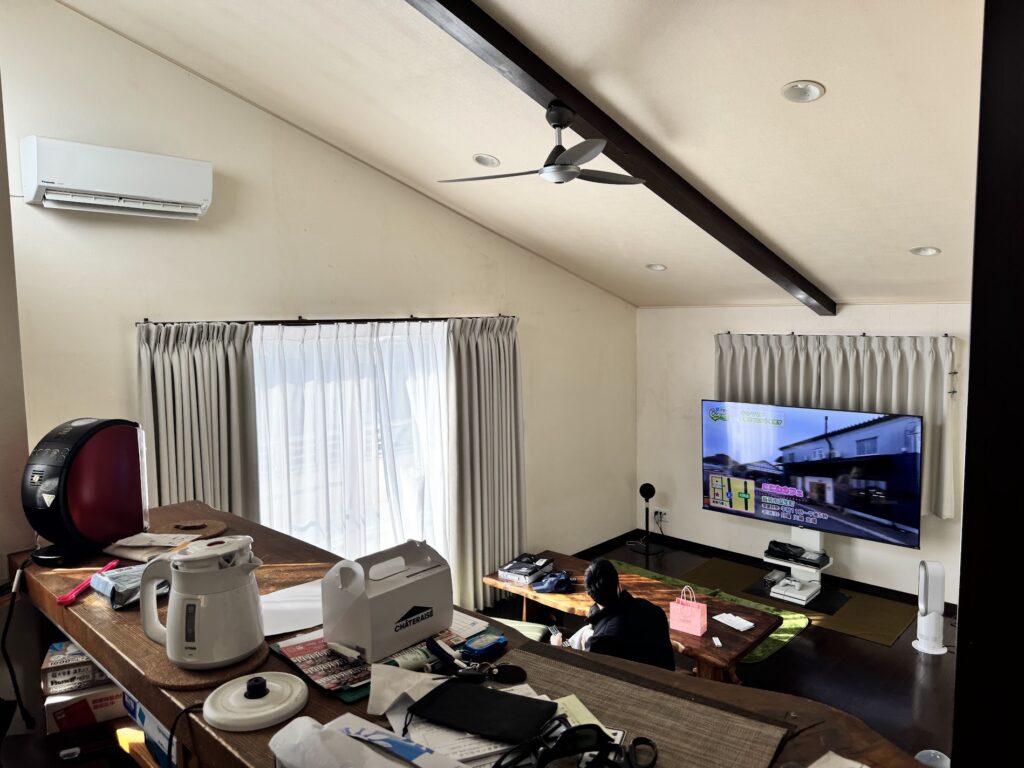 ②吹き抜けの天井高が高い部屋のため上部に暖気が上がり、生活スペースが温まらない。