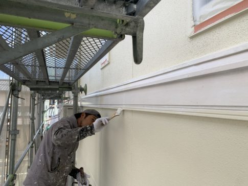 塗装親方・三上浩平ブログ外壁の下塗りを行いました。一度白く塗り上げた後に色を入れていきます。下塗りを塗装するのは、中塗り、上塗りを行う際の塗料の食いつきを良くするために行います。下塗りが塗れていないと、塗料が捲れたりする原因になります。