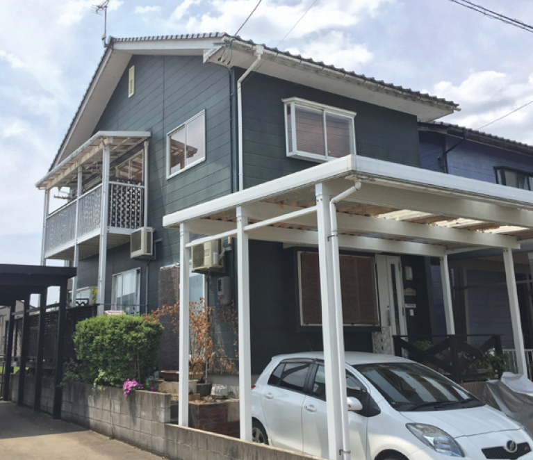 濃い色は、塗装の色褪せや外壁の傷み等、やはり淡色と比較すると目立ち易い方です。そういうデメリットを考えてもこの色にしたいというお客様の強いご要望でした。
