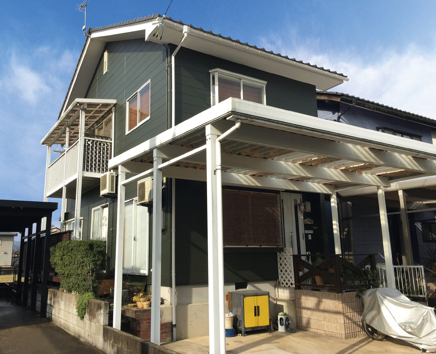 Oさんのお宅は色を変えずに、以前の外壁色に近い深みのある濃いグリーンをとのことでした。