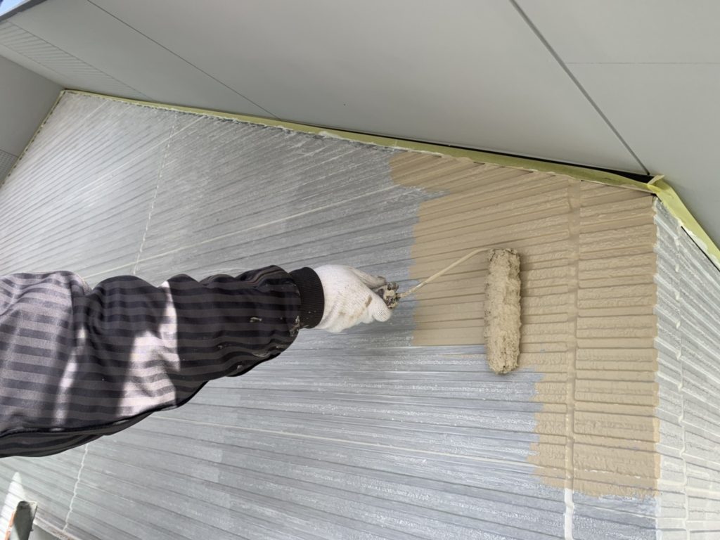 広い面はローラーでの塗装になります。こちらもローラーの目がムラにならないよう留意して行っています。
