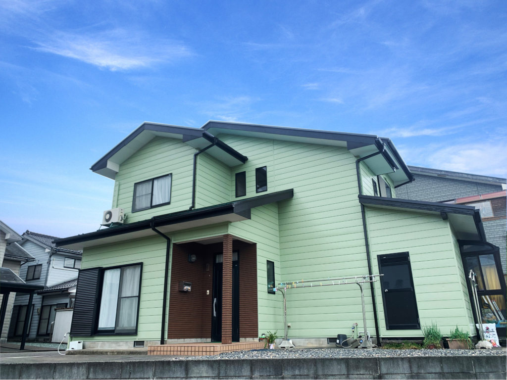 横張サイディングにグリーンの外壁塗装をした敦賀の注文住宅!
