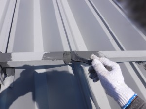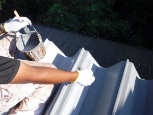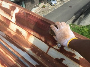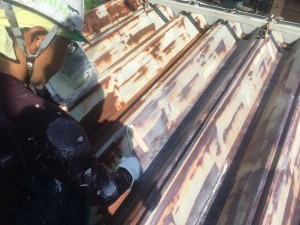 折板屋根の錆の部分を全体的に、研磨していきます。