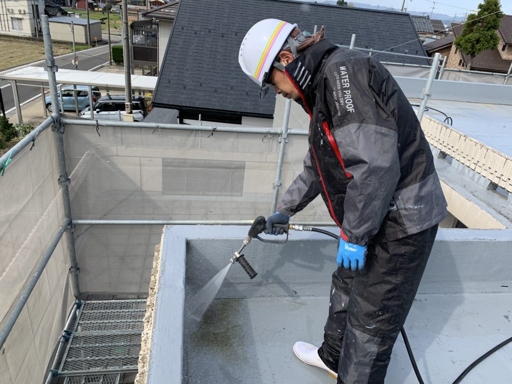 高圧洗浄機を使用して屋上や外壁の水洗いをしました。